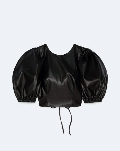 Faux leather blouse with voluminous sleeves