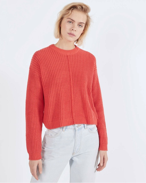 The insulated jacket is made of leather. A light layer of insulation. Details: stand-up collar, zipper, two pockets on the sides.
